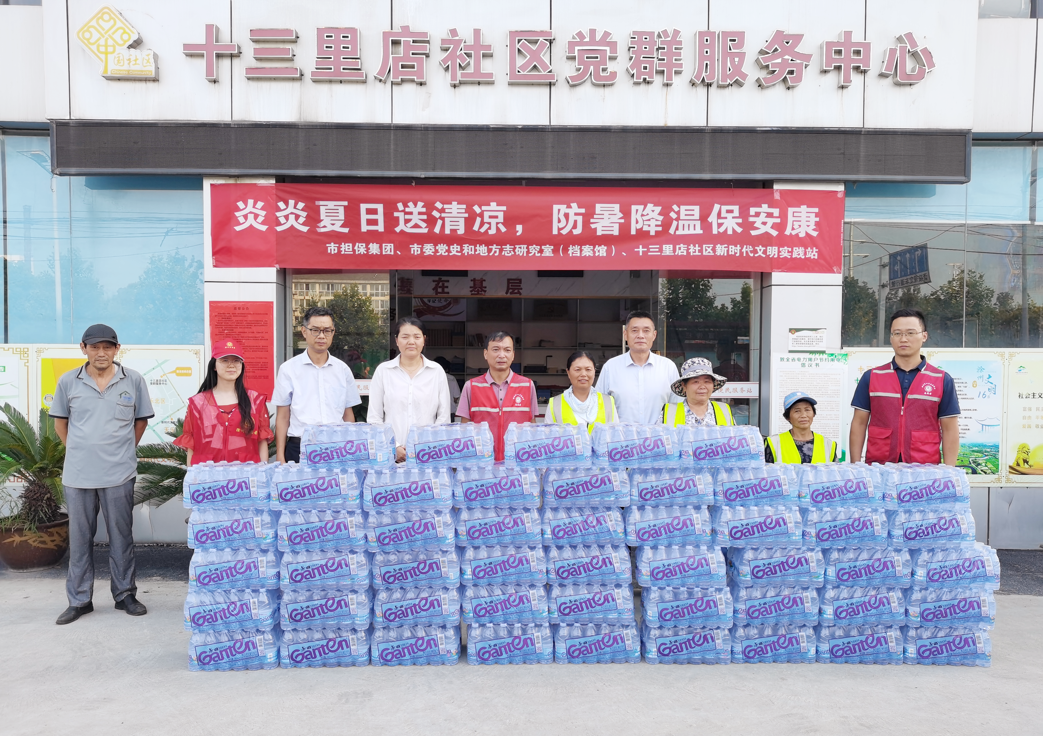 連日來,氣溫一直居高不下,處處熱浪滾滾,戶外作業(yè)的環(huán)衛(wèi)工人們頂烈日、冒酷暑,用辛勤的汗水換來干凈整潔的環(huán)境。為給他們送去一份清涼和關(guān)愛,市擔(dān)保集團第一、第二黨支部聯(lián)合市委黨史辦、十三里店社區(qū)黨組織共同開展以“ 炎炎夏日送清涼,防暑降溫保安康”為主題的夏送清涼主題黨日活動,有效推動黨群融合,持續(xù)推進“我為群眾辦實事 ”實踐活動走深走實。