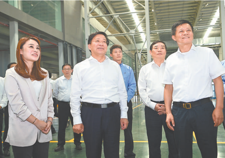 8月31日,省委書記韓俊在滁州市鳳陽縣安徽福萊特光伏玻璃有限公司聽取企業(yè)生產經營狀況介紹。本報記者 楊 竹 攝