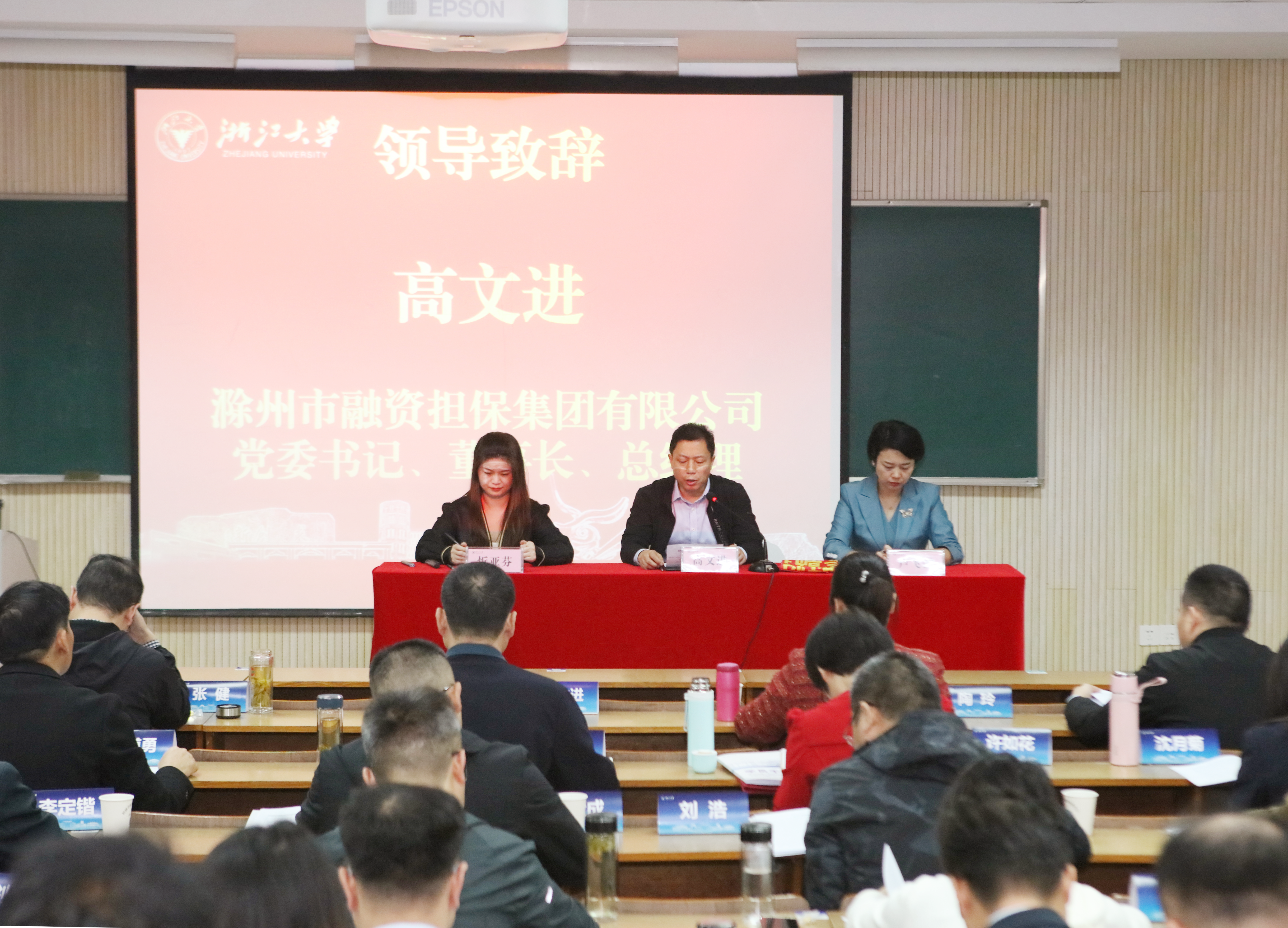 開班儀式上,浙江大學(xué)經(jīng)濟學(xué)院黨委副書記盧飛霞致歡迎辭,詳細(xì)介紹了浙江大學(xué)的發(fā)展歷史、辦學(xué)情況和本次培訓(xùn)班的課程設(shè)置、師資力量。滁州市擔(dān)保集團(tuán)黨委書記、董事長、總經(jīng)理高文進(jìn)對浙江大學(xué)認(rèn)真籌備、精心安排本次培訓(xùn)班表示衷心感謝,并提出三點要求:一是提高“我要學(xué)”的思想認(rèn)識,常懷“本領(lǐng)恐慌”之心,常有“能力危機”之感。二是明確“學(xué)什么”的目標(biāo)定位,找準(zhǔn)與融資擔(dān)保工作實際的契合點發(fā)力點,明晰今后工作的總體思路和前進(jìn)方向。三是做好“怎么學(xué)”的行動落實,要端正學(xué)習(xí)態(tài)度,講究學(xué)習(xí)方法,嚴(yán)格遵守各項紀(jì)律。