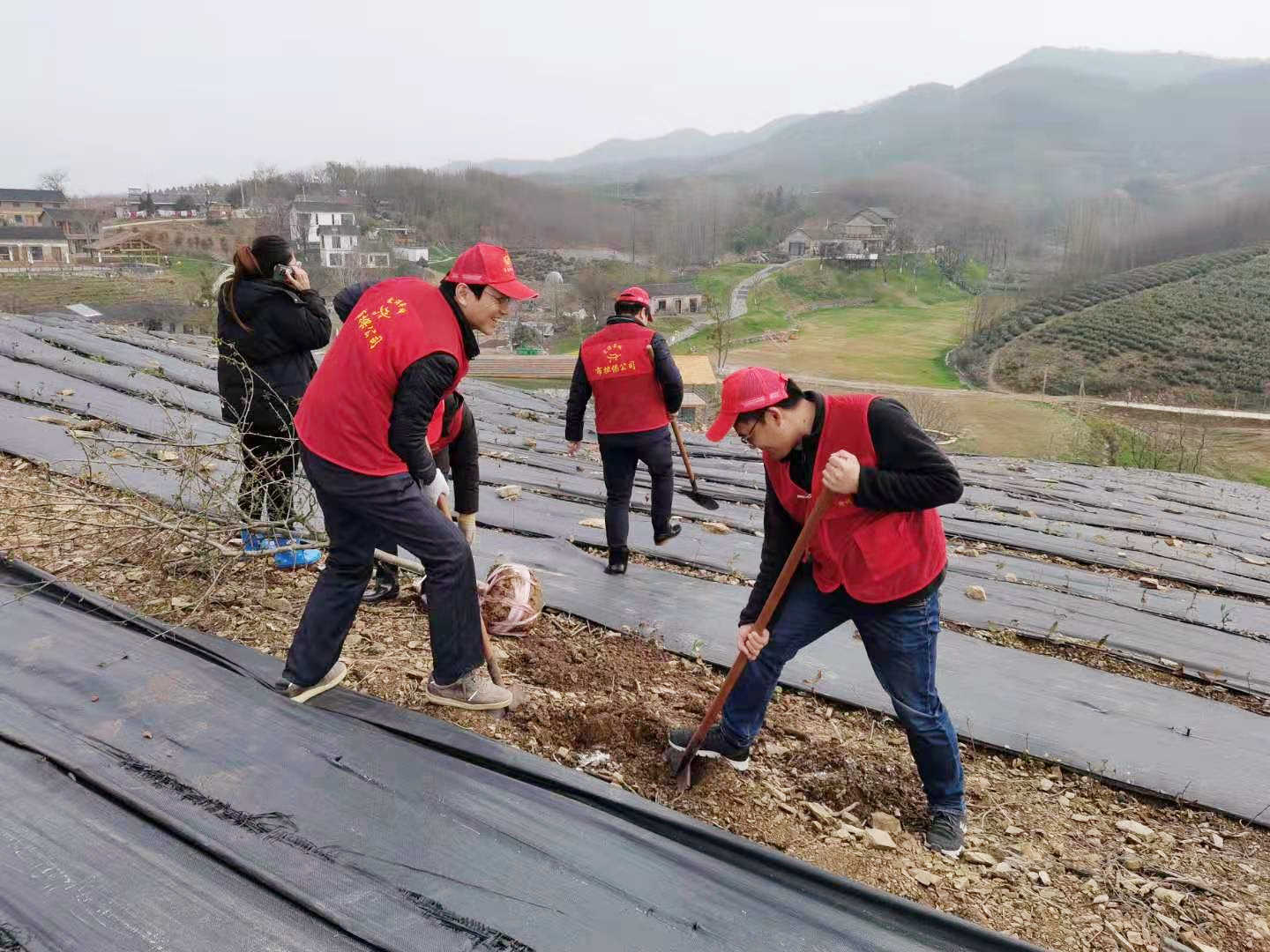 3月12日早晨,志愿者們帶上工具,身著紅馬甲開赴皖東茶鄉(xiāng)施集鄉(xiāng)井楠村。一到現(xiàn)場(chǎng),志愿者們立即行動(dòng)起來,在技術(shù)人員的指導(dǎo)下,根據(jù)地上已做好的標(biāo)記,有的挖洞開溝,有的搬運(yùn)花木,有的扶苗培土,各項(xiàng)工作按程序有條不紊開展起來。由于前一天剛下過雨,山上還很泥濘,志愿者們不怕臟不怕累,全身心投入到綠化美化的志愿服務(wù)中,那身亮麗的紅馬甲在茶園里顯得格外靚眼。經(jīng)過一天的辛勤勞動(dòng),一棵棵紅梅、綠梅、臘梅,一棵棵樸樹、玉蘭,被間隔種植在新開發(fā)的茶山上,來年的茶山一定更加美麗。