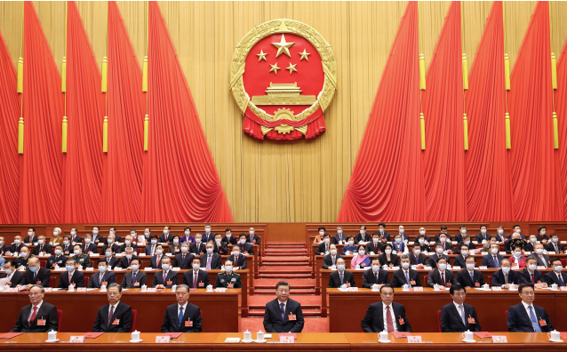 習(xí)近平、李克強(qiáng)、汪洋、王滬寧、趙樂際、韓正、王岐山和大會主席團(tuán)成員在主席臺就座。
