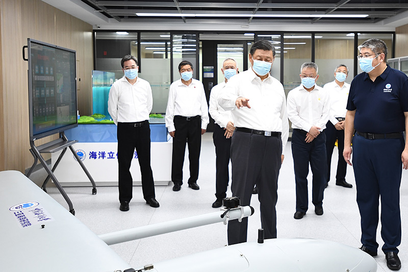 4月10日至13日,中共中央總書記、國(guó)家主席、中央軍委主席習(xí)近平在海南考察。這是10日下午,習(xí)近平在中國(guó)海洋大學(xué)三亞海洋研究院考察。新華社記者 燕雁 攝