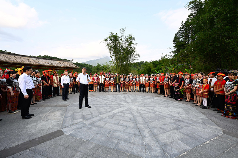 4月10日至13日,中共中央總書記、國(guó)家主席、中央軍委主席習(xí)近平在海南考察。這是11日下午,習(xí)近平在五指山市水滿鄉(xiāng)毛納村同村民們親切交流。新華社記者 李學(xué)仁 攝