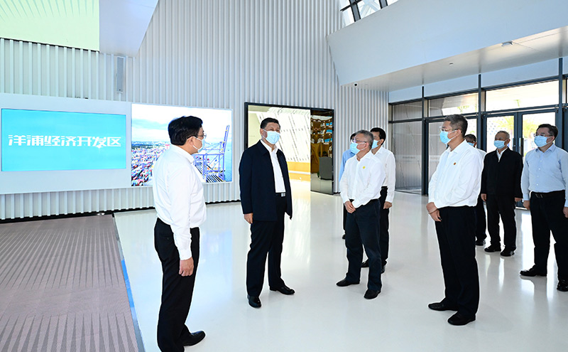 隨后,習(xí)近平來(lái)到洋浦國(guó)際集裝箱碼頭小鏟灘港區(qū),了解港口建設(shè)發(fā)展情況,同現(xiàn)場(chǎng)作業(yè)人員、掛職干部代表等親切交流。習(xí)近平強(qiáng)調(diào),振興港口、發(fā)展運(yùn)輸業(yè),要把握好定位,增強(qiáng)適配性,堅(jiān)持綠色發(fā)展、生態(tài)優(yōu)先,推動(dòng)港口發(fā)展同洋浦經(jīng)濟(jì)開(kāi)發(fā)區(qū)、自由貿(mào)易港建設(shè)相得益彰、互促共進(jìn),更好服務(wù)建設(shè)西部陸海新通道、共建“一帶一路”。他指出,黨中央選派干部來(lái)自由貿(mào)易港掛職,既體現(xiàn)了黨中央對(duì)自由貿(mào)易港建設(shè)的關(guān)心和支持,也是對(duì)干部的培養(yǎng)鍛煉,要發(fā)揮掛職干部的積極作用,讓他們?cè)诨鶎右痪€增長(zhǎng)才干。