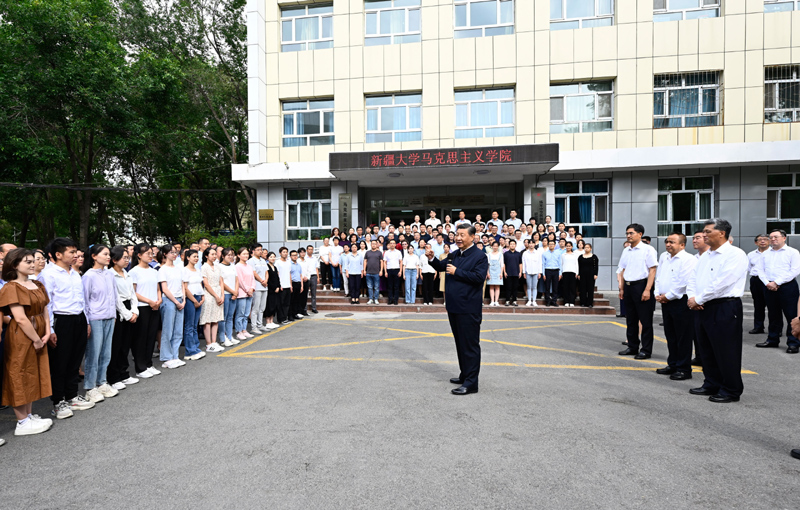 7月12日至15日,習(xí)近平在新疆維吾爾自治區(qū)黨委書記馬興瑞、自治區(qū)政府主席艾爾肯·吐尼亞孜陪同下,先后來到烏魯木齊、石河子、吐魯番等地,深入學(xué)校、國際陸港區(qū)、社區(qū)、博物館、農(nóng)村和新疆生產(chǎn)建設(shè)兵團(tuán)等進(jìn)行調(diào)研。