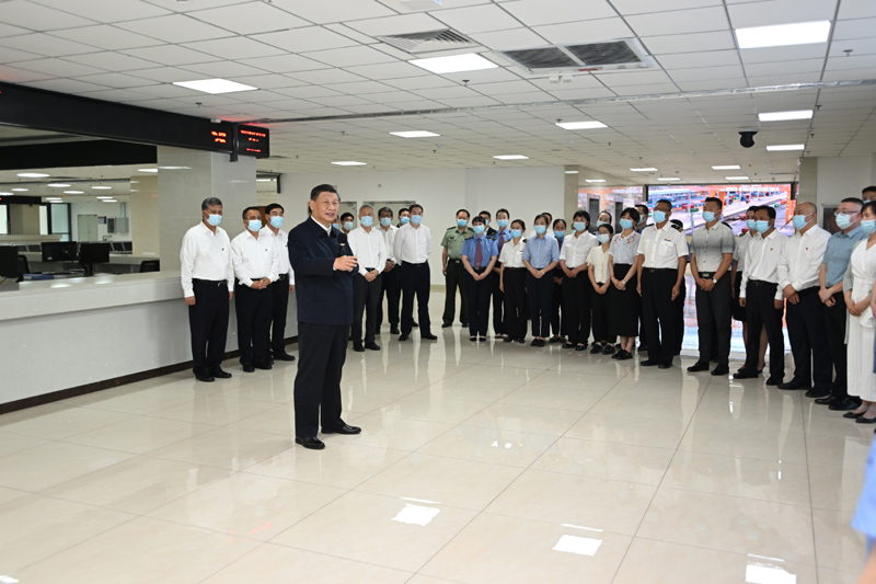 7月12日至15日,中共中央總書記、國家主席、中央軍委主席習(xí)近平在新疆考察。這是12日下午,習(xí)近平在烏魯木齊國際陸港區(qū),同工作人員及現(xiàn)場辦事人員親切交流。新華社記者 謝環(huán)馳 攝