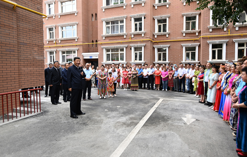 7月12日至15日,中共中央總書記、國家主席、中央軍委主席習(xí)近平在新疆考察。這是13日上午,習(xí)近平在烏魯木齊市天山區(qū)固原巷社區(qū)考察時,同各族群眾在一起。新華社記者 謝環(huán)馳 攝