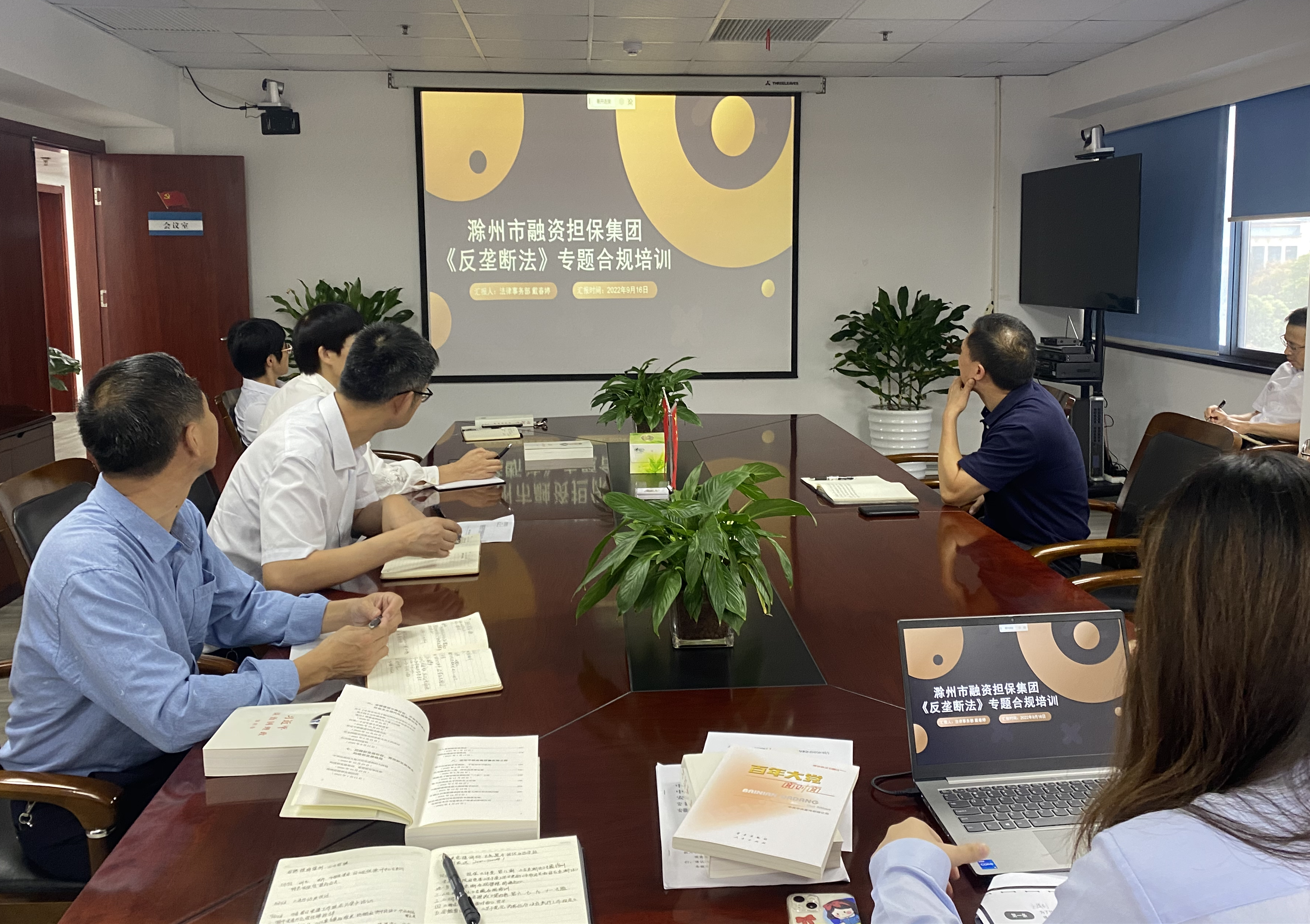 為貫徹落實(shí)國(guó)務(wù)院國(guó)資委《關(guān)于深入學(xué)習(xí)貫徹<中華人民共和國(guó)反壟斷法>進(jìn)一步加強(qiáng)反壟斷合規(guī)管理的通知》部署要求,提高集團(tuán)員工尊法、學(xué)法、用法意識(shí),2022年9月16日市擔(dān)保集團(tuán)組織開(kāi)展《反壟斷法》專(zhuān)題合規(guī)培訓(xùn)。