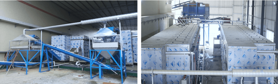 工作流程:濕泥叉車上料→10噸暫存料斗→皮帶輸送機(jī)→低溫?zé)岜酶苫到y(tǒng)(2條5×48HP熱泵模塊)→出料稱重→皮帶輸送機(jī)→提升機(jī)→100立方干泥料倉裝車外運(yùn)